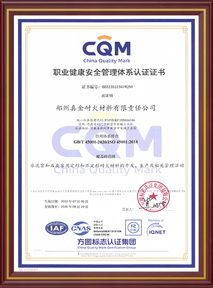 真金耐火榮譽資質(zhì)